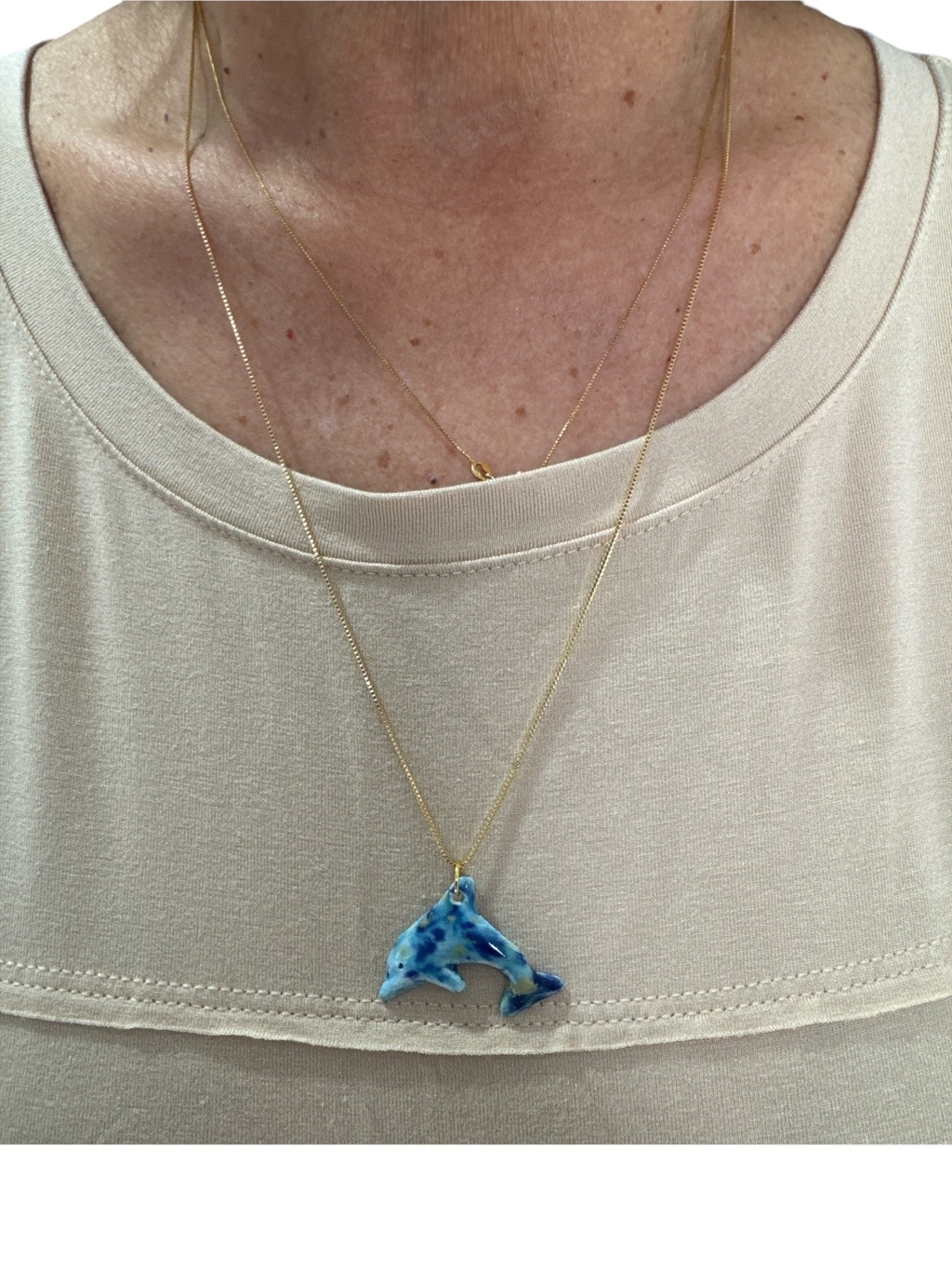 Corrente banhada a ouro 18k com pingente de golfinho azul